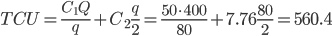 TC = p · Q + TCU = 40 · 400 + 565.69 = 16565.69 руб./год